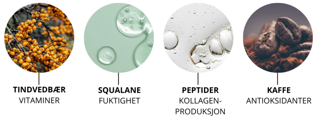 Nordisk havtornolie er rig på store mængder beskyttende plantestoffer og næring og er en af nøgleingredienserne i Vessi Nordic Under Eye Treatment sammen med fugtighedsgivende squalane og sheasmør. Kombineret med opstrammende kaffeekstrakt og peptider vil denne øjencreme både give store mængder fugt samtidig med, at den bidrager til at opstramme og reducere aldringstegn omkring øjnene.